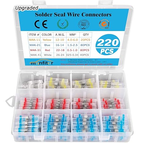 Manfiter 220pcs Solder Seal Wire Connectors Heat Shrink Butt Connectors Self Solder Waterproof Wire Connectors Awg 10 12 14 16 18 22 24 26 Solder Seal